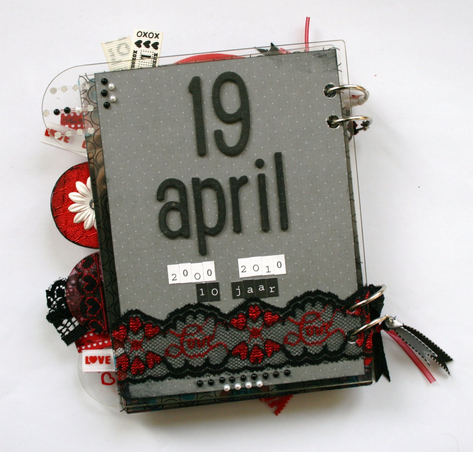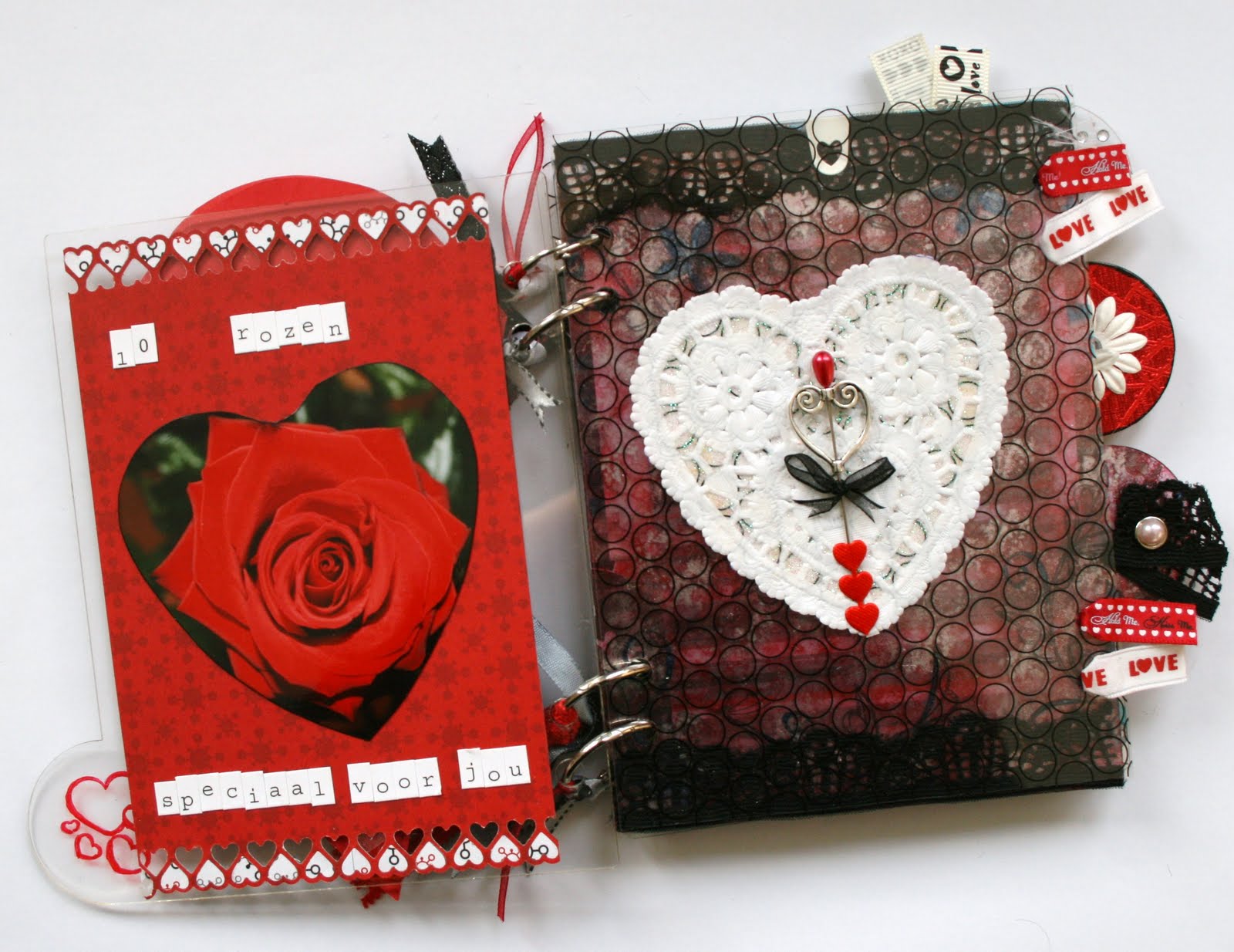 * Embellishments hart, stickers, pin uit eigen voorraad