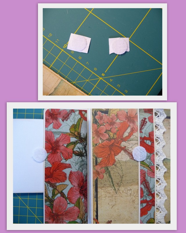 Neem een rond klittenband en plak die op de kaart (zie voorbeeld) dit wordt de sluiting van je kaart.