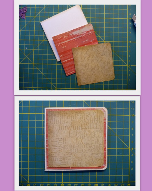 Snij een stukje cardstok van 8.5 x 8.5 (randen weer beïnkten) en snij een bijpassend stukje designpapier van 8 x 8 cm ook hier de randen beïnkten.