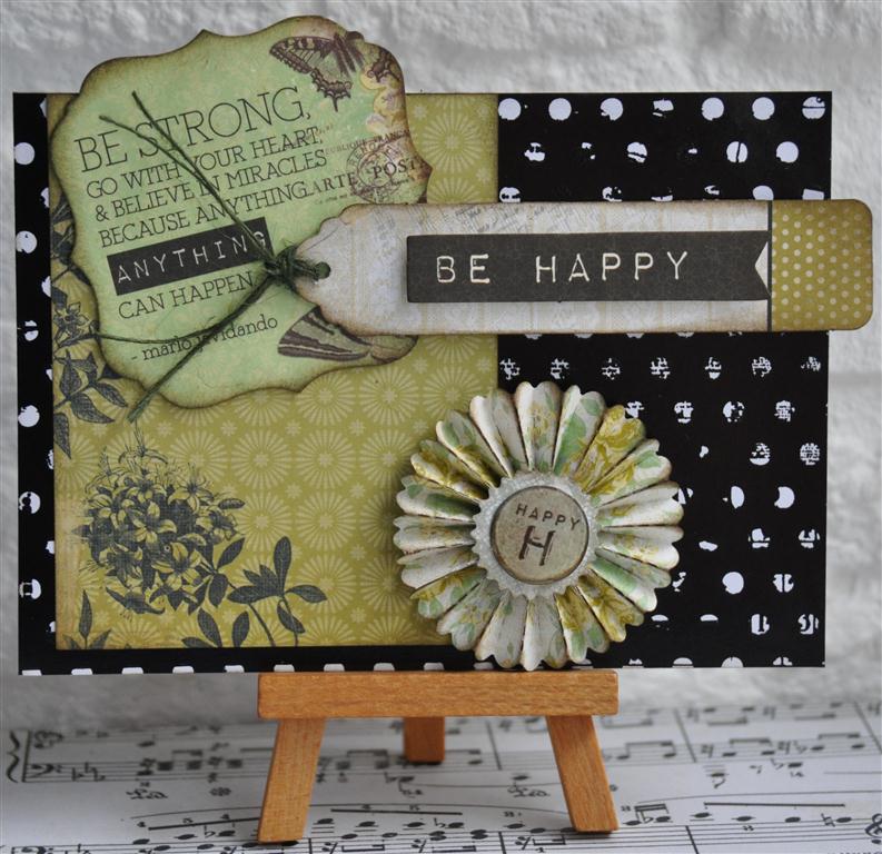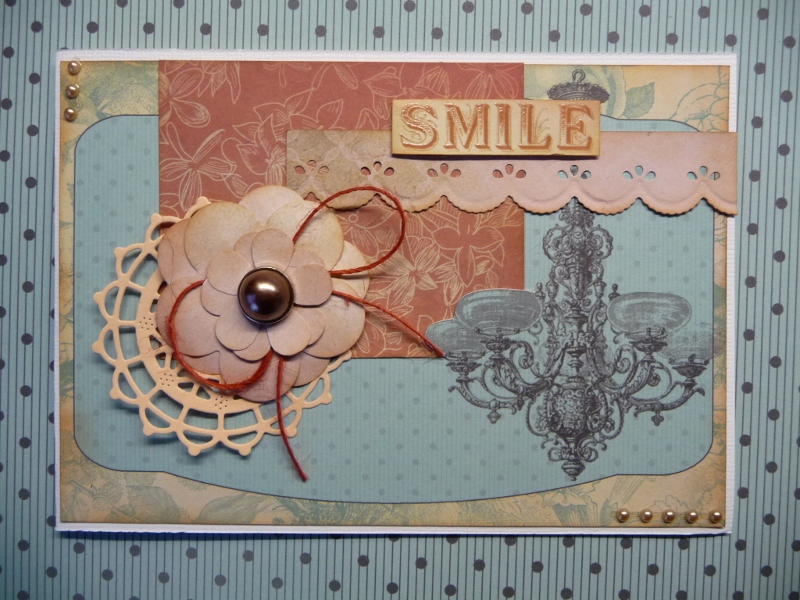 Ik heb gebruik gemaakt van het mooie papier van Kaisercraft Charlottes Dream Collection. Dit heb ik aangevuld met wat groen cardstock. De randjes van het papier zijn aangezet met bruine distress inkt.