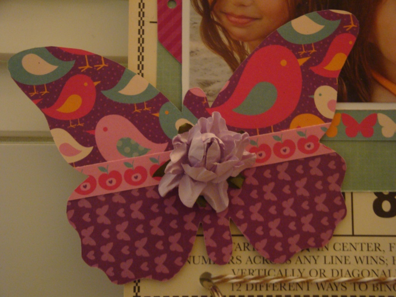 Naast de Bingo Kaarten zijn ook de chipboard elementen zoals de vlinder, de bloem en het hart ook uit het assortiment van Jenny Bowlin. Deze elementen zijn bewerkt met de papiercollectie "Butterfly Kisses" van Kaisercraft.