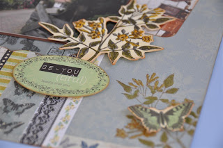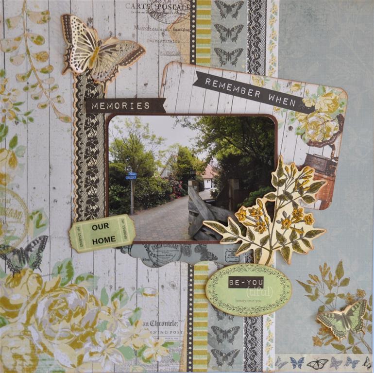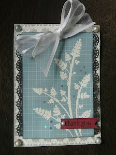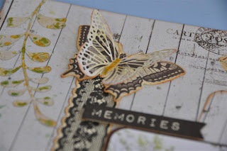 Gebruikte materialen: offshore papier van Kaisercraft Tide en Current. stans pair of ferns van CheeryLinn, stans tag. bloemetjes Petal liquid Green Tara, distressinkt broken chine en mariegold,