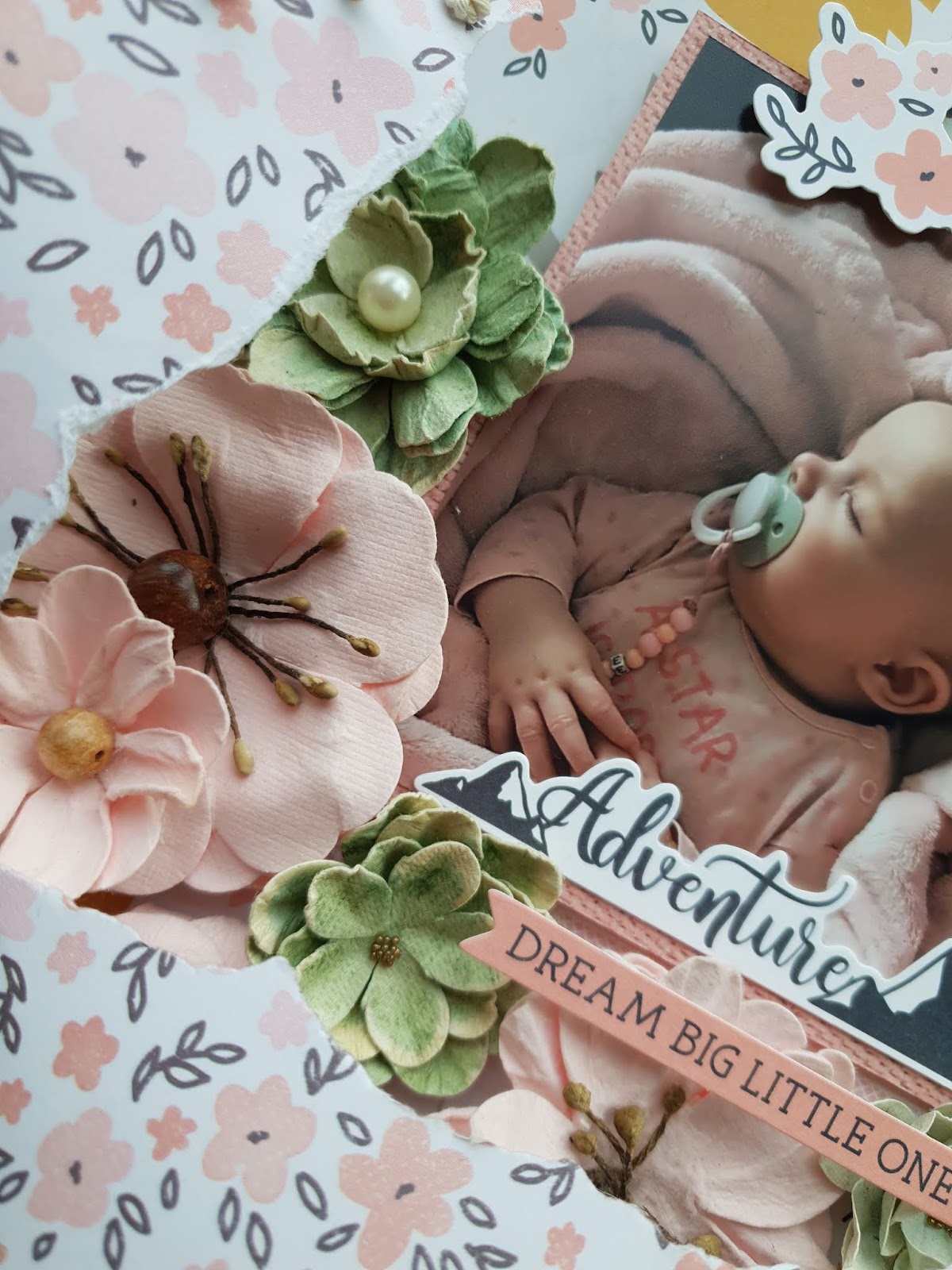 Vandaag een layout van mezelf wat ik speciaal gedesigned heb voor mijn kleindochter Jealee Diana, voor dit design heb ik gebruik gemaakt van de prachtige Hike & Seek collectie van Kaisercraft!! Een prachtige collectie voor baby's maar ook voor peuters en kleuters!!