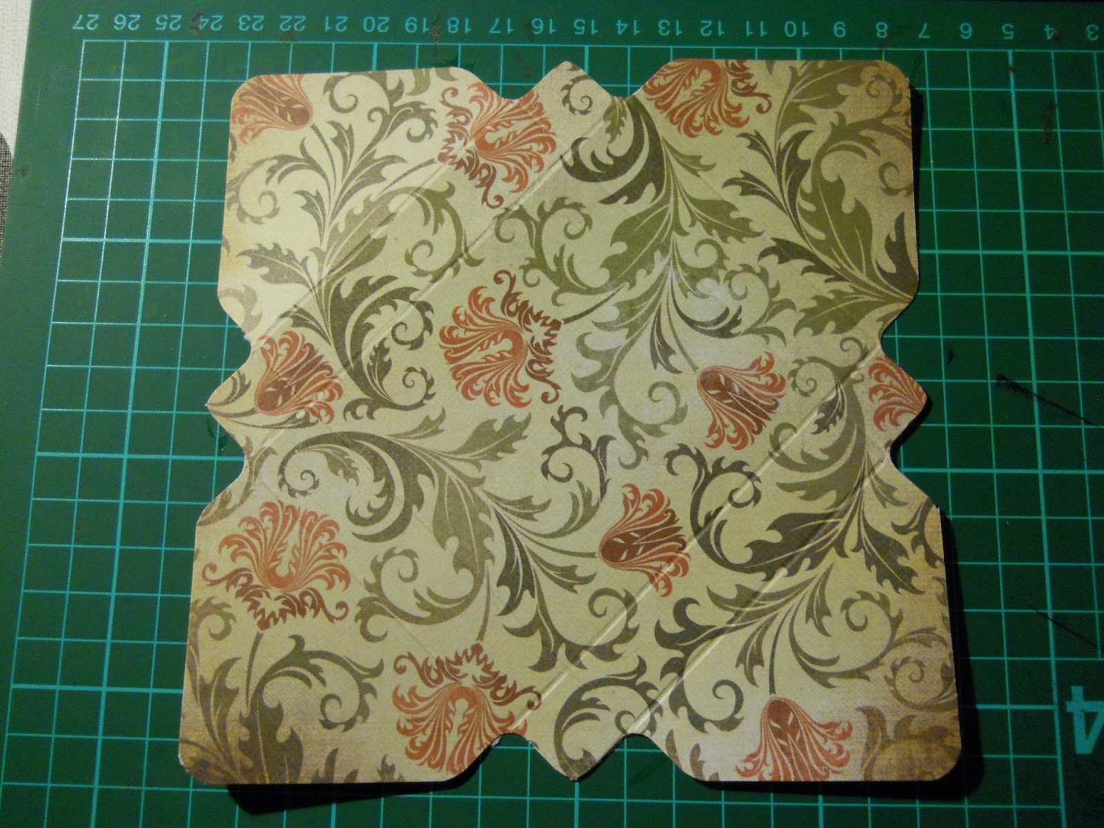 Op de basis heeft zij geheel op eigen wijze een kerstboom gemaakt hier voor heeft zij verschillende afmetingen gebruik uit verschillende dessin vellen.