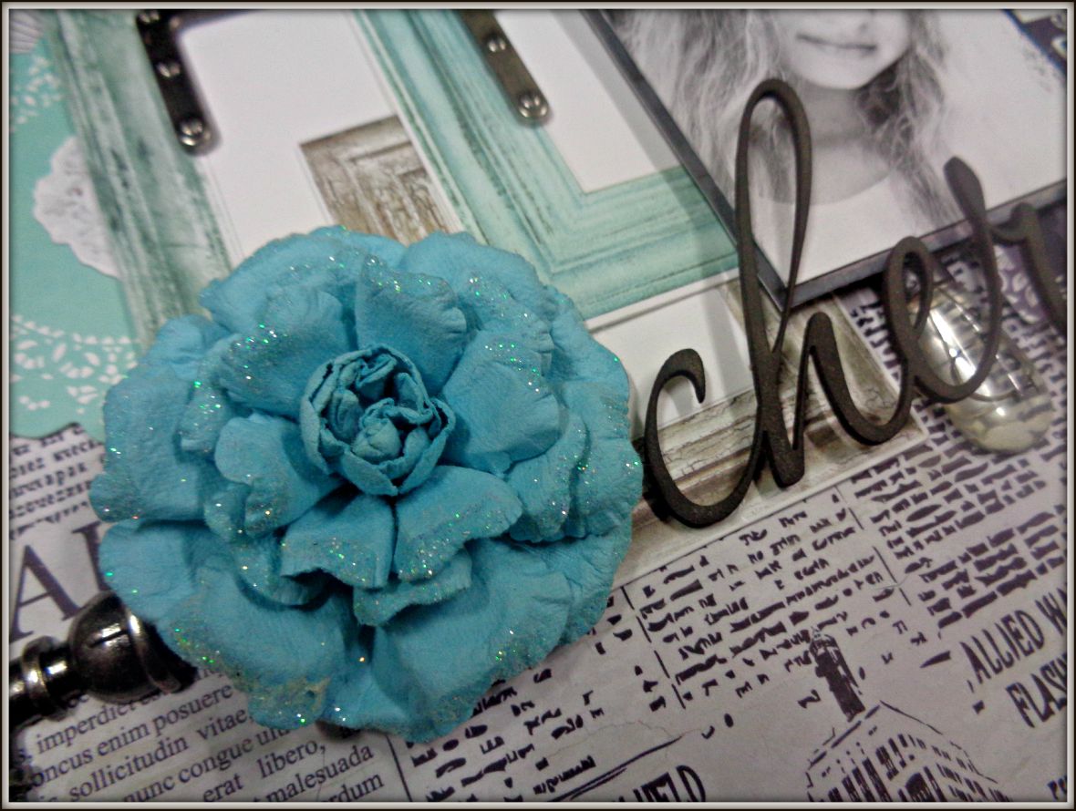 Voor de basis heeft Deb een craft cardstock van 30.5 x 30.5 genomen, voor haar design heeft Deb gekozen voor de prachtige collectie Blue Bay van Kaisercraft gebruikt. Een clean and simple design met een vleugje mixed media.