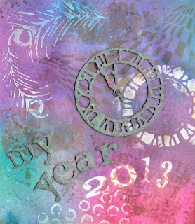 Het is mijn cover voor mijn jaaroverzicht 2013 geworden. Ik heb hiervoor een witte ordner gekocht en ik heb deze cover voorop gedaan. Elke maand ga ik 2 A4 tjes bestempelen en met foto's bewerken om op die manier mijn jaar 2013 in beeld te brengen. Dus wie weet laat ik nog een keer iets zien uit dit jaarboek.