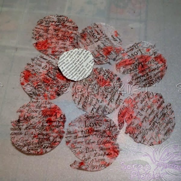 als het goed is heb je nog 1 gestempeld rondje over, deze is voor het hart van de bloem.