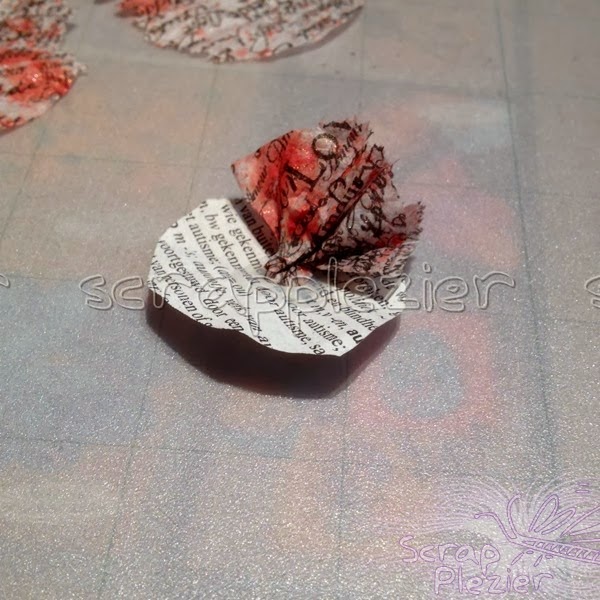 De achtergrond maakte ik zelf met behulp van sprays en rozen geknipt uit servetten.
