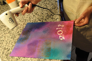 Daarna het geheel met de heattool goed drogen, droog ook de achterkant even goed, zo krult je papier niet om en droog je gelijkmatig.