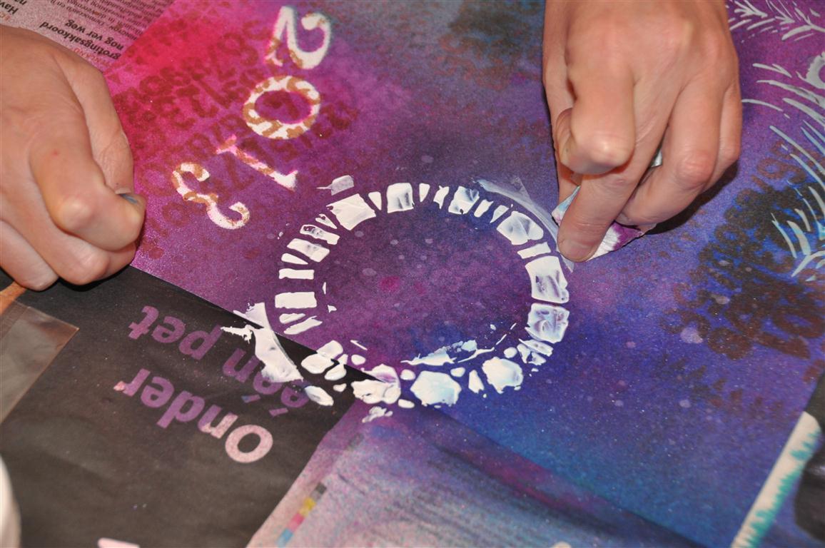 Ik zet ook wat van deze stempel op mijn vel papier.